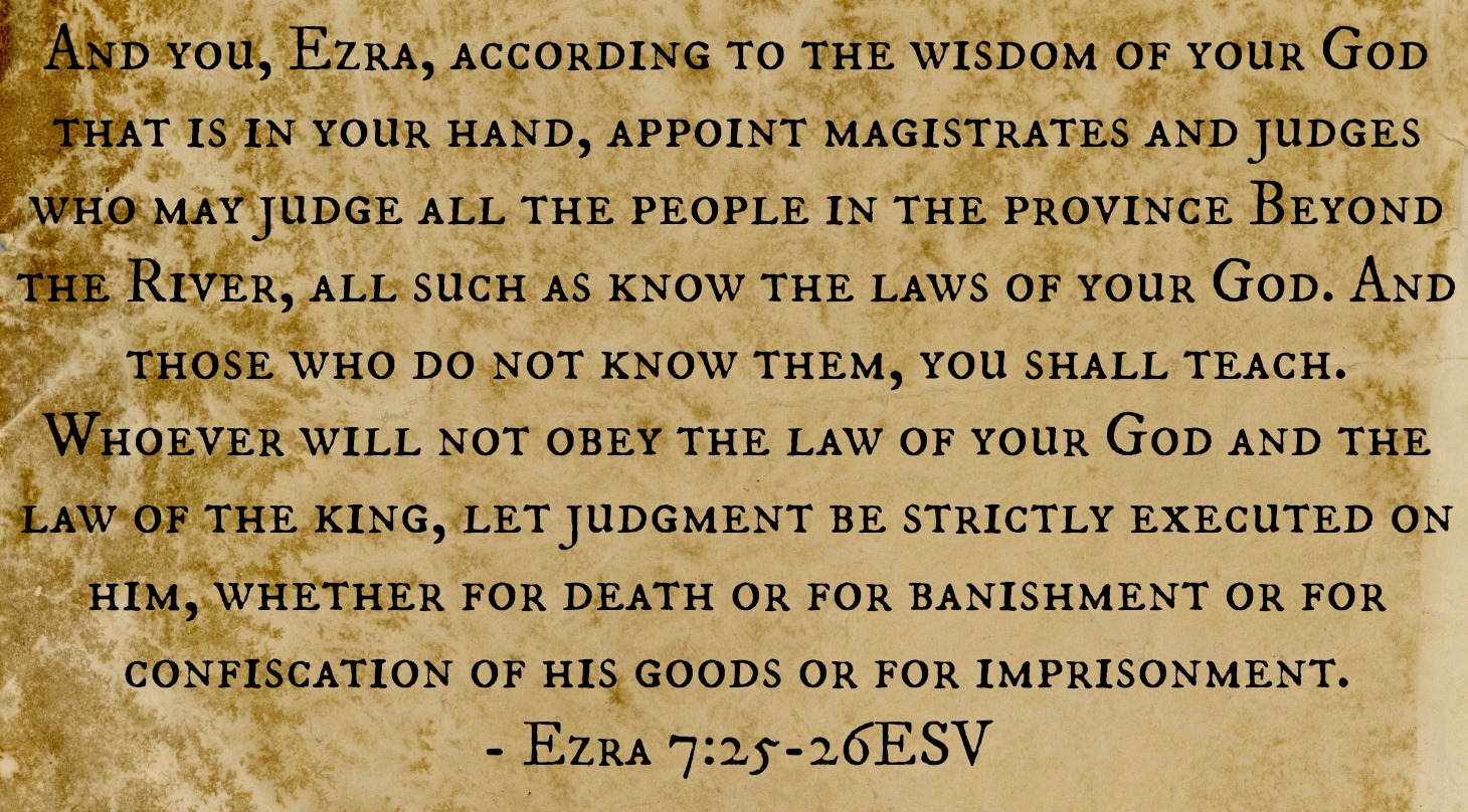 Lastly, Artaxerxes gives Ezra the authority to lead the work in Jerusalem. In so doing the king empowers Ezra to use the full arm of the law. He is to set up judges and governors, and to use capital punishment to enforce his position there.
